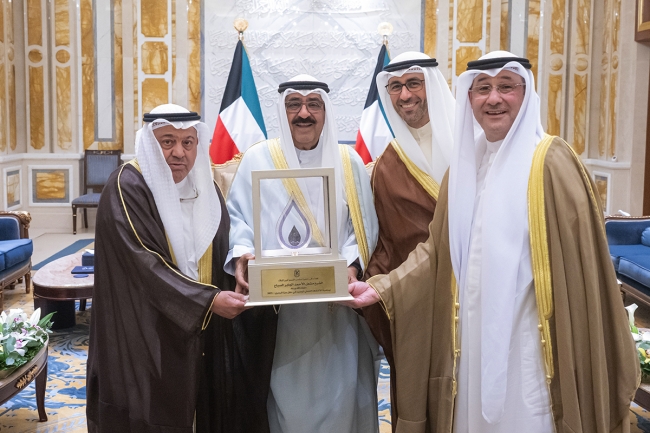 حيث اطلعوا سموه رعاه الله على الاكتشاف الجديد والمتمثل في (حقل جزة البحري) للغاز الطبيعي والذي يعد إنجازا في المنطقة البحرية الكويتية مسجلا في تاريخ الكويت أعلى معدل انتاج لبئر عمودي من طبقة المناقيش وذلك ضمن جهود شركة نفط الكويت متمنياً سموه حفظه الله لهم دوام التوفيق والسداد نحو تحقيق المزيد من الانجازات في القطاع النفطي.