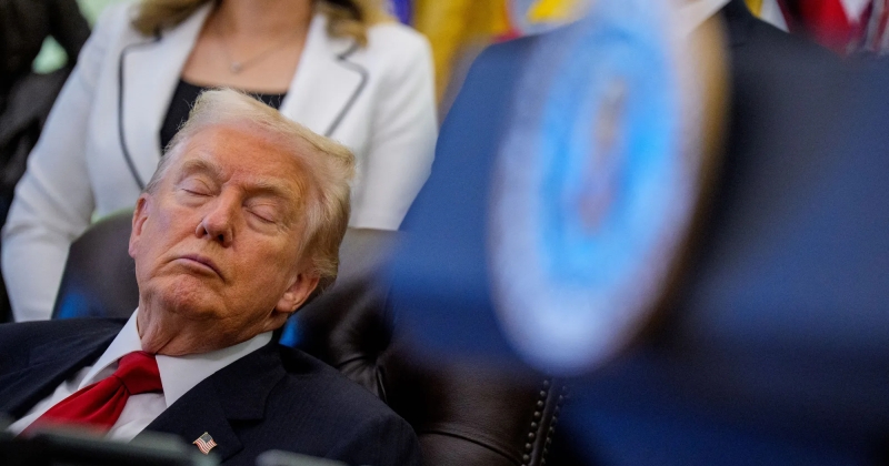 أثارت صور للرئيس الأميركي دونالد ترامب، بدا فيها كما لو كان نائماً خلال فعالية رسمية في المكتب البيضاوي، تفاعلاً واسعاً على مواقع التواصل الاجتماعي، وسط انتقادات في شأن «الإرهاق وفقدان التركيز»، بينما أكد البيت الأبيض «جاهزية الرئيس الكاملة».