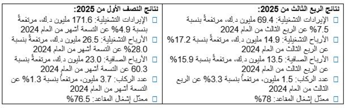 الربع الثالث 2025: موسم صيفي ناجح واستثمار متواصل في تعزيز تجربة العملاء