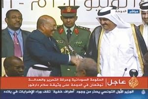 عواصم ـ وكالات: من جديد تحولت قطر الى ساحة لم الشمل ومهد اتفاقات السلام، حيث رعى أميرها الشيخ حمد بن خليفة آل ثاني وبحضور الرئيس السوداني عمر البشير ومشاركة عدد من نظرائه الافارقة توقيع وثيقة للسلام في دارفور بين الحكومة السودانية وحركة التحرير والعدالة. ويأتي التوقيع على الوثيقة «النهائية» بعد ثلاثين شهرا من المفاوضات برعاية الأمم المتحدة والاتحاد الافريقي والجامعة العربية وبوساطة قطرية ناجحة. هذا وقد علمت «الأنباء» أن خلافا وقع في اللحظات الاخيرة قبل التوقيع بسبب إصرار «التحرير والعدالة» على مسمى وزير في السلطة الإقليمية بينما رأت الحكومة أن يكون المسمى سكرتيراً، وبعد جهود أمير قطر تنازلت الحكومة وقبلت بمسمى وزير على ان تكون السلطة الإقليمية مؤلفه من 11 وزيرا.
