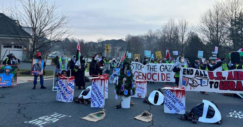 شاركها فيسبوك تويتر لينكدإن بينتيريست تيلقرام البريد الإلكتروني نظم نشطاء ضد الحرب مظاهرة أمام منزل وزير الدفاع الأميركي لويد أوستن مطالبين بوقف حرب الإسرائيلية على قطاع غزة. المصدر: الراي