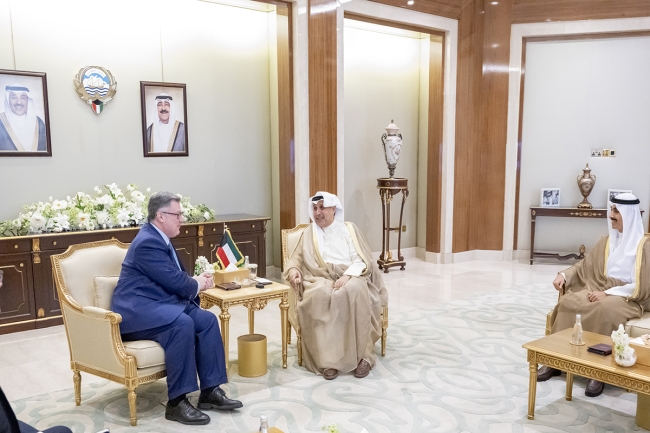 استقبل وزير شؤون الديوان الأميري الشيخ حمد جابر العلي الصباح ورئيس ديوان سمو ولي العهد الشيخ ثامر جابر الأحمد الصباح بقصر بيان صباح اليوم القائم بالأعمال في سفارة الولايات المتحدة الأميركية لدى دولة الكويت ستيفن بتلر الذي قدم التهنئة لهما بمناسبة تعيينهما في منصبيهما الجديدين وجرى خلال اللقاء استعراض العلاقات التاريخية الوثيقة بين البلدين الصديقين والتأكيد على متانة الشراكة الاستراتيجية بينهما والحرص على تنميتها في مختلف المجالات.