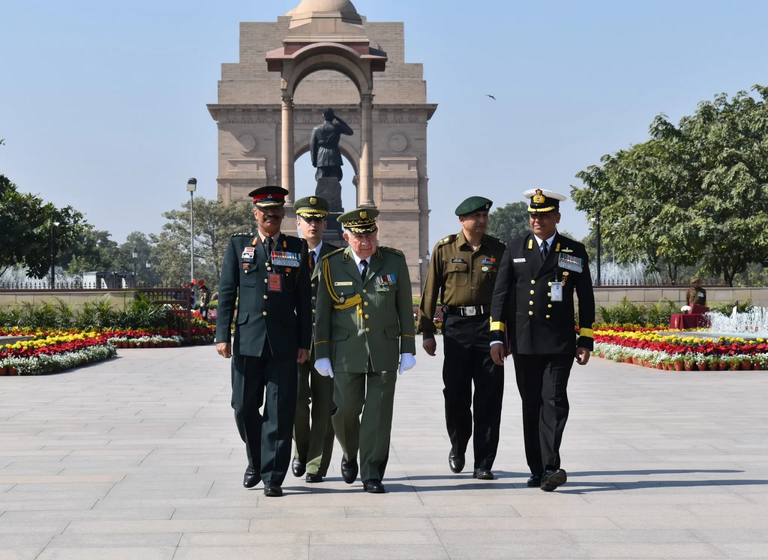 وحسب بيان وزارة الدفاع الوطني، قام الفريق أول بزيارة النصب التذكاري للحرب في العاصمة الهندية نيودلهي، وبعد الاستماع لشروحات حول تاريخ هذا المعلم وضع الفريق أول اكليلا من الزهور ووقف دقيقة صمت تقديرا لذكرى الأبطال الذين يخلدهم هذا النصب.