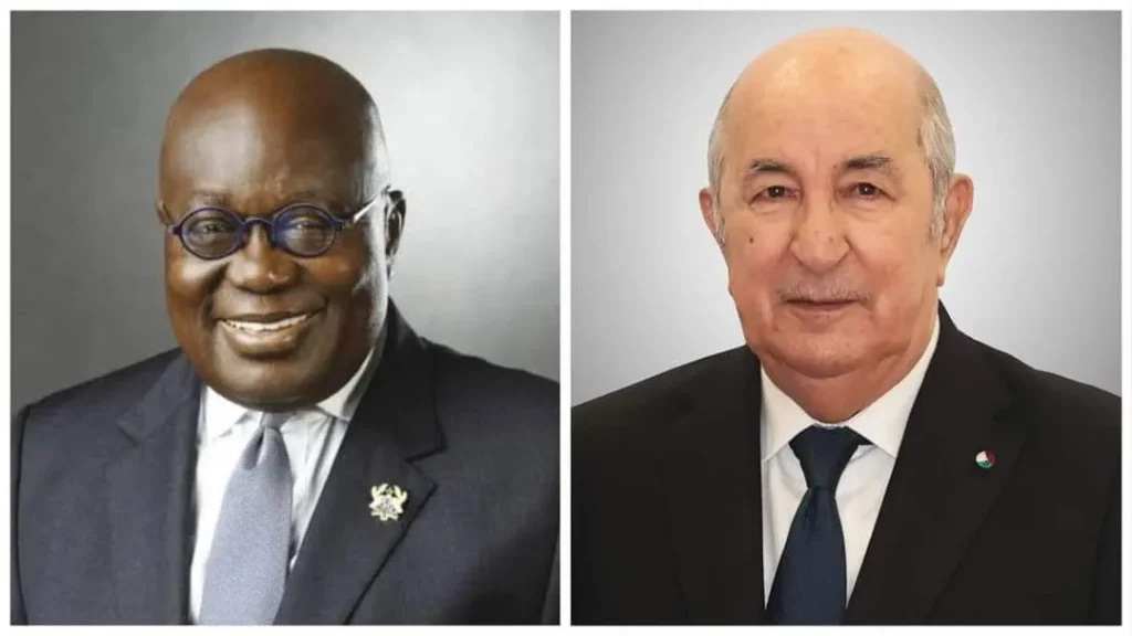 هنأ رئيس جمهورية غانا نانا أدو دانكوا أكوفو أدو، رئيس الجمهورية عبد المجيد تبون، بمناسبة فوزه بعهدة رئاسية ثانية.