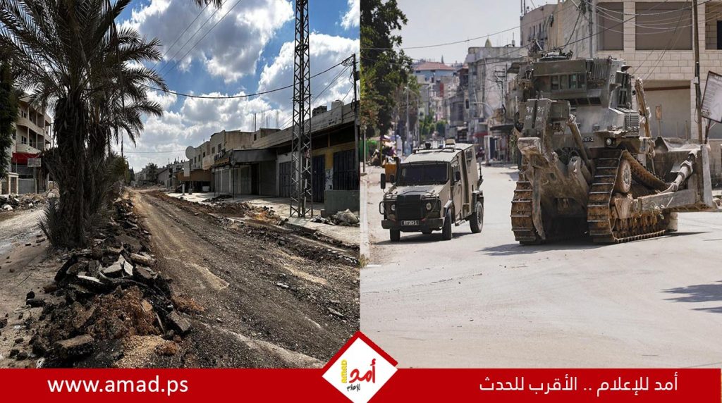 وتسبب العدوان الاسرائيلي الذي دفع بعشرات الآليات والجرافات الثقيلة، في انقطاع المياه عن المخيم، بعد تدمير خط المياه الرئيسي، الى جانب تدمير البنية التحتية للشوارع خاصة شارع نابلس المحاذي لمداخل المخيم، وما يضمه من منازل ومحلات تجارية.
