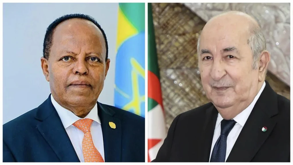 وجاء في البيان: “وجه رئيس الجمهورية، عبد المجيد تبون، باسم الجزائر شعبا وحكومة، وأصالة عن نفسه، رسالة تهنئة لرئيس جمهورية إثيوبيا الفيدرالية الديمقراطية، تاي أتسكي سيلاسي، بمناسبة انتخابه رئيسا للبلاد”.