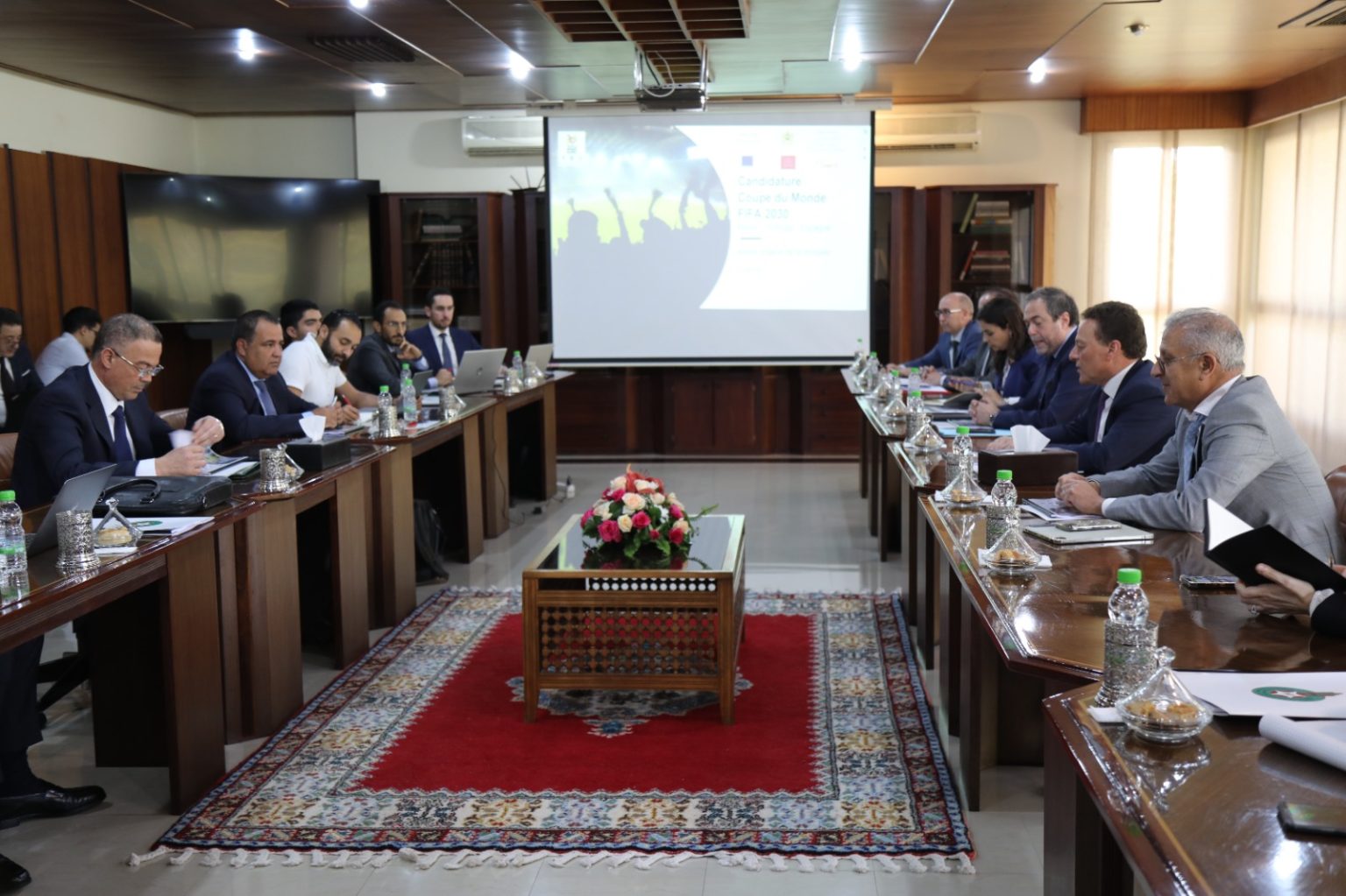 وخصص هذا الاجتماع للتنسيق بين كافة القطاعات الحكومية المعنية، وإرساء منظومة موحدة للعمل الجماعي المشترك وأجرأة خارطة طريق مندمجة، والتي أساسها التفعيل الأمثل للالتزامات وتحقيق التقائية المبادرات والتدخلات وانسجام برمجتها في تكامل للأدوار بين مختلف الأطراف المتدخلة، وذلك بما من شأنه توفير كل الظروف والإمكانات لضمان نجاح المملكة في كسب رهان تنظيم هذا الحدث الرياضي العالمي، إلى جانب كل من إسبانيا والبرتغال.