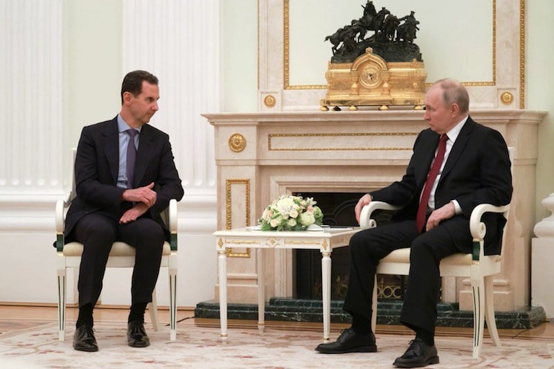 وقد دعمت روسيا نظام الأسد منذ عام 2015، حيث شنت غارات جوية على المعارضة السورية انطلاقاً من قاعدتي حميميم وطرطوس، واللتين كانتا تمثلان ركيزة نفوذ موسكو في الشرق الأوسط. إلا أن الغزو الروسي لأوكرانيا استنزف الموارد العسكرية، مما أدى إلى انسحاب تدريجي من سوريا وفقاً لتقارير حديثة.