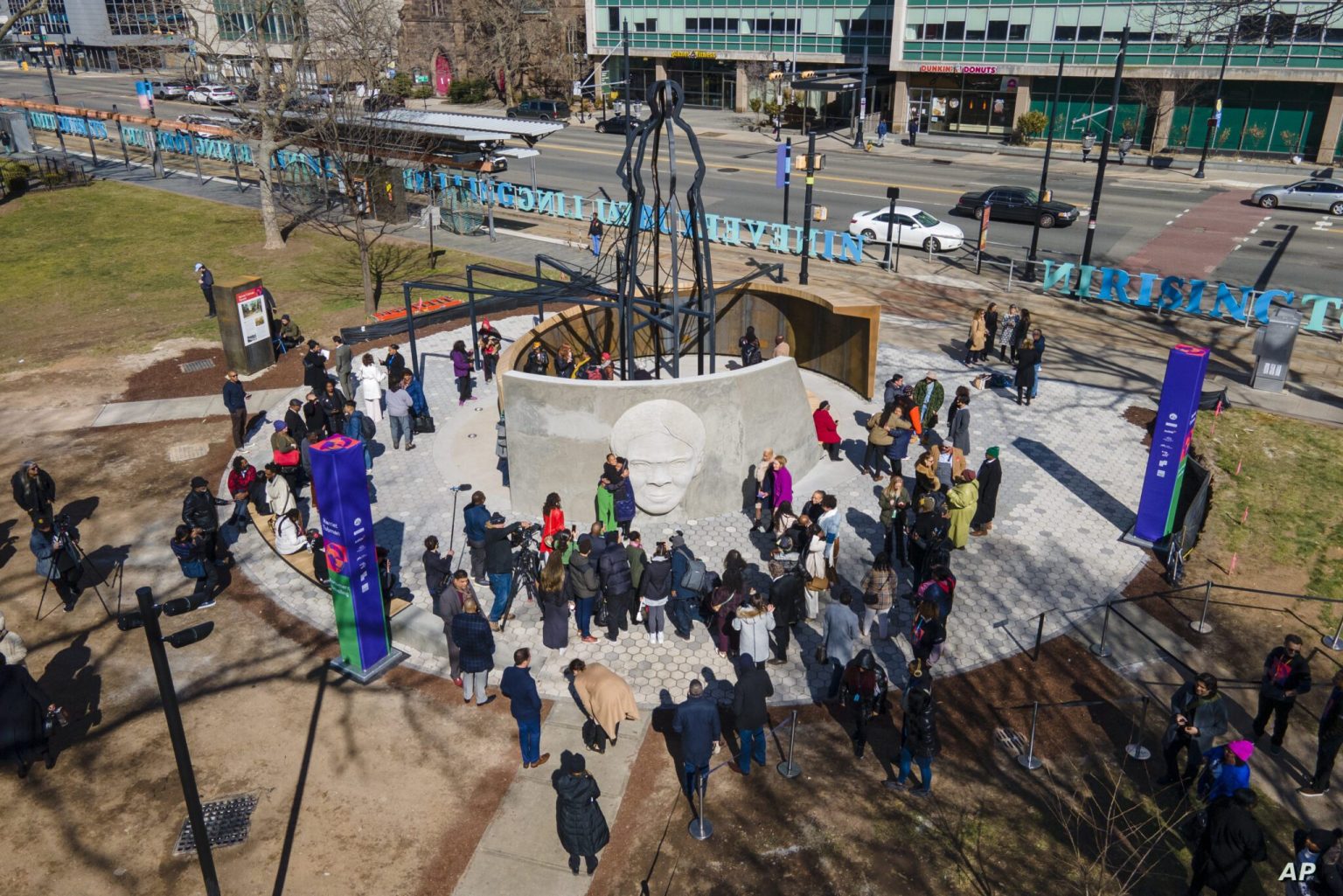 في التاسع من مارس 2023، اليوم السابق لعيد ميلاد الناشطة في مجال إلغاء الرق وحقوق الإنسان، هاريت توبمان، توافد العديد من الأميركيين لحضور إزاحة الستار عن النصب التذكاري الجديد لهذه الشخصية التاريخية بولاية نيوجيرزي، وذلك في الموقع الذي كان يشغله تمثال كريستوفر كولومبوس.