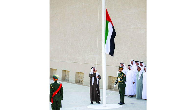 ورافق مراسم رفع العلم عزف السلام الوطني لدولة الإمارات، بمشاركة مجموعة من أبناء الوطن من الضباط المتقاعدين، تعبيراً عن تقدير الدولة لأبنائها الذين أسهموا في مختلف مراحل تطورها ونهضتها، ووفاءً وعرفاناً لمسيرة عطائهم وما قدموه على مدى عقود في سبيل رفعة الوطن وصون أمنه، والحفاظ على مكتسباته ليبقى عزيزاً شامخاً.