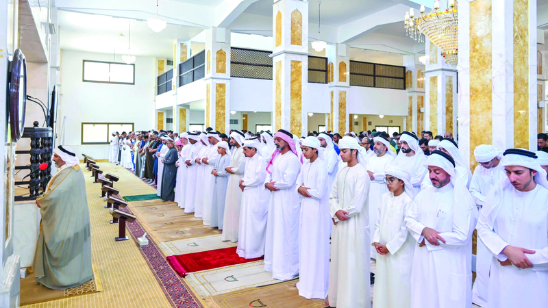 وأدى الصلاة إلى جانب سموّه، سموّ الشيخ عمار بن حميد النعيمي، ولي عهد عجمان رئيس المجلس التنفيذي، والشيخ راشد بن حميد النعيمي رئيس دائرة البلدية والتخطيط، وعدد من الشيوخ وكبار المسؤولين والمصلين من المواطنين والمقيمين.