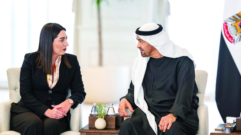 استقبل صاحب السمو الشيخ محمد بن زايد آل نهيان، رئيس الدولة، حفظه الله، بمجلس قصر البحر في أبوظبي، وزيرة الشؤون الداخلية في جمهورية أرمينيا، أربينه سركيسيان.
